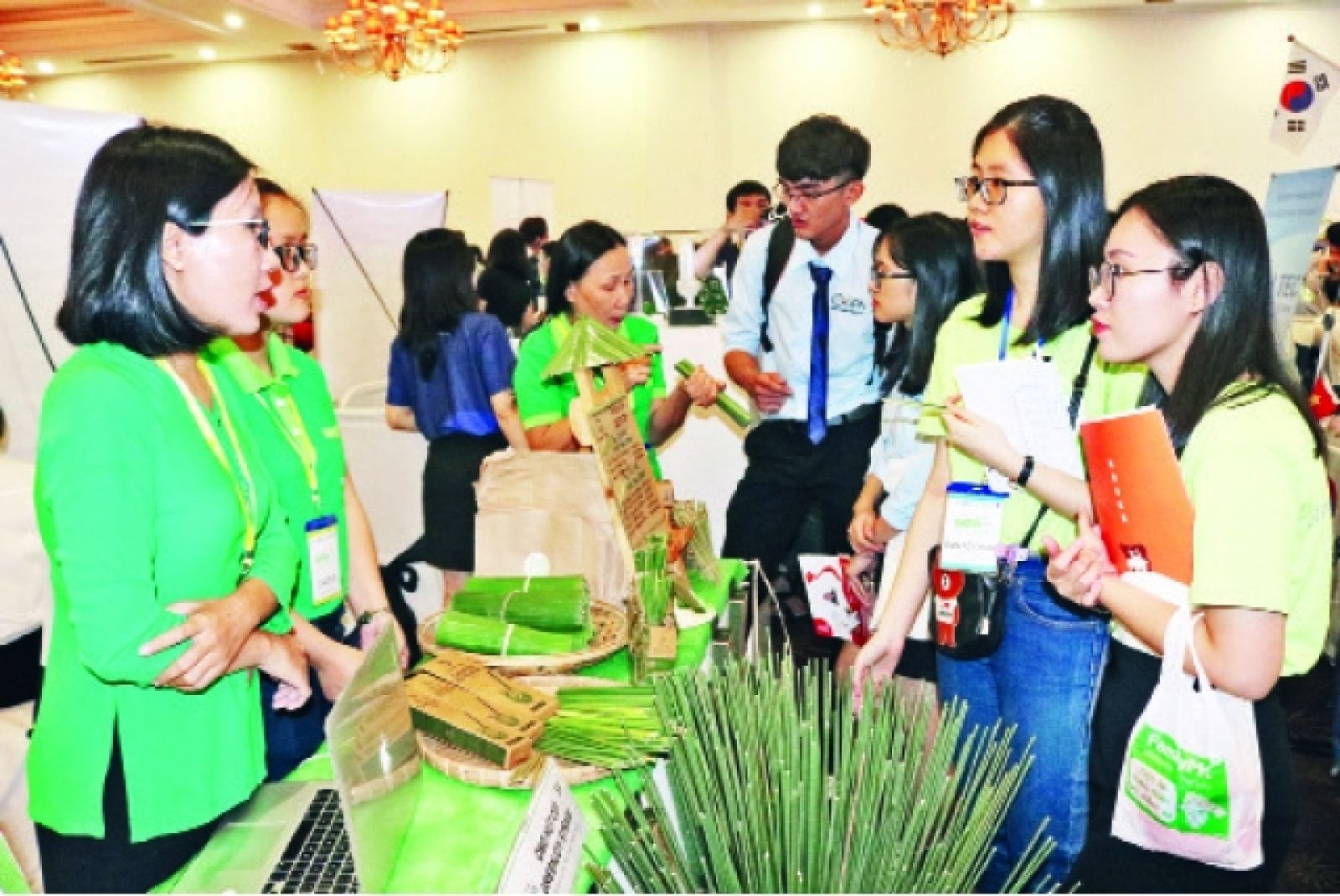 Mô hình khởi nghiệp của nhóm Greenjoy với sản phẩm ống hút làm bằng cỏ thay thế ống hút nhựa.