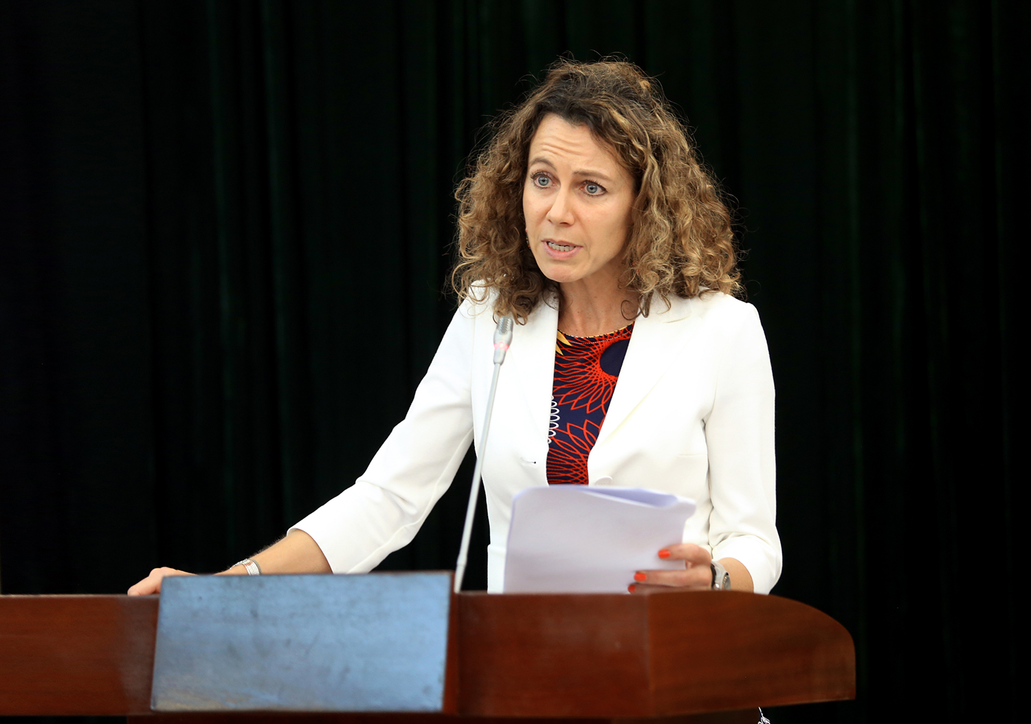 Bà Lien Verbauwhede Koglin, Cố vấn Phòng hỗ trợ khởi nghiệp và doanh nghiệp nhỏ và vừa của WIPO phát biểu tại Lễ ký kết
