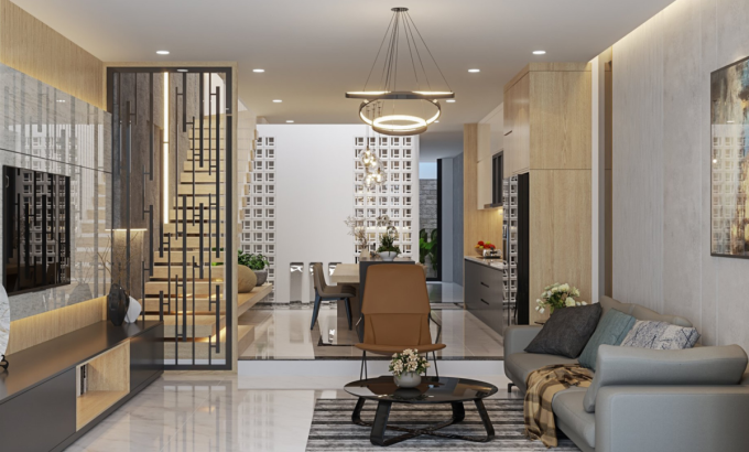 Thiết kế nội thất phòng khách do công ty HID thực hiện. Ảnh: HID