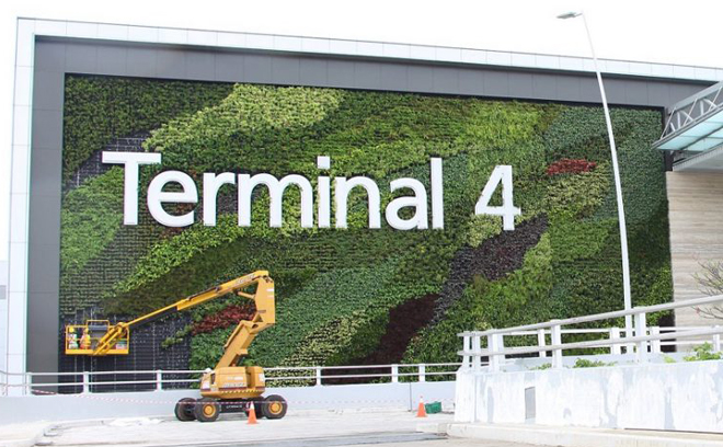Bức tường xanh trong Terminal 4 ở sân bay Changi Airport, một trong những dự án của GWS Living Art. |