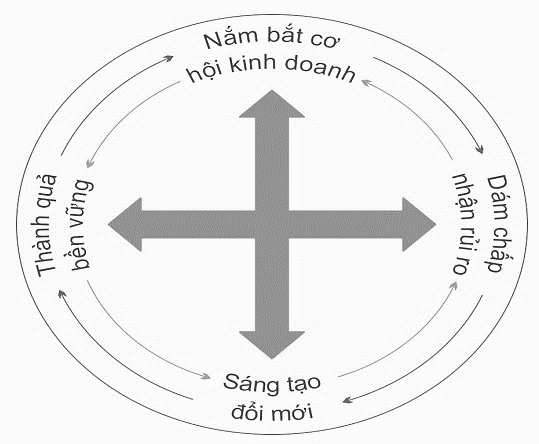 Nắm bắt cơ hội kinh doanh => Dám chấp nhận rủi ro => Triển khai cơ hội kinh doanh đó một cách sáng tạo - đổi mới => Mang lại thành quả bền vững