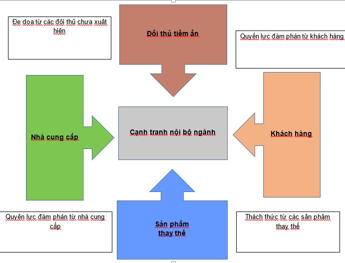 Mô hình gồm 5 biến: Đối thủ tiềm ẩn, Nhà cung cấp, Khách hàng và Sản phẩm thay thế.