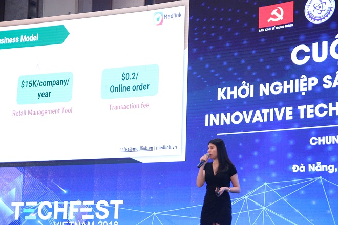 CEO Nguyễn Thị Ngọc Huyền thuyết trình trong cuộc thi Techfest 2018. Ảnh: Medlink. |