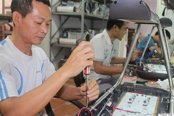 Nhân viên công ty đang sản xuất các thiết bị y tế hiện đại, giá phải chăng.