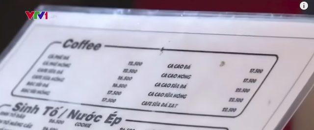 Menu đồ uống tại quán với 500 đồng lẻ.