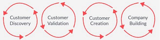Thay đổi hoàn toàn quan điểm truyền thống của việc phát triển một khởi nghiệp, Steve Blank đã đưa ra khái niệm phát triển khách hàng gồm bốn bước và nếu quan sát bốn vòng tròn dưới đây, bạn sẽ thấy tại sao cách làm truyền thống đang tiêu tốn thời gian công sức mà không mang lại hiệu quả như mong muốn.