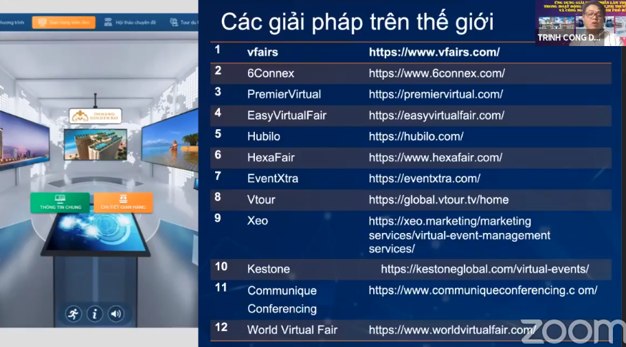 Thông qua Hội thảo lần này, nhằm giúp các doanh nghiệp, dự án khởi nghiệp, cá nhân có thể đăng ký gian hàng và đưa thông tin lên nền tảng triển lãm thực tế ảo. Nhà tổ chức sự kiện có thể đưa các thông tin về sự kiện cho người xem trực tuyến. Xem các thống kê sau sự kiện. Người xem có thể trải nghiệm triển lãm thực tế ảo trực tuyến trên hầu hết các thiết bị (máy tính, SmartPhone, Ipad,... dưới dạng Web App), có thể tương tác với gian hàng, diễn giả, nhà tổ chức sự kiện.