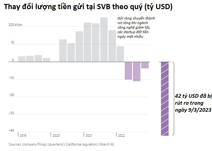 Hãng tin Bloomberg cho biết trong vài ngày qua, cuộc khủng hoảng của SVB đã tạo nên làn sóng sợ hãi khắp châu Á, từ mảng công nghệ đến các nhà đầu tư. Đỉnh điểm là khi ngân hàng 40 năm tuổi với 209 tỷ USD tài sản này bị sụp đổ trong chưa đầy 48 tiếng vào ngày 10/3 đã thực sự khiến nhiều người chấn động.