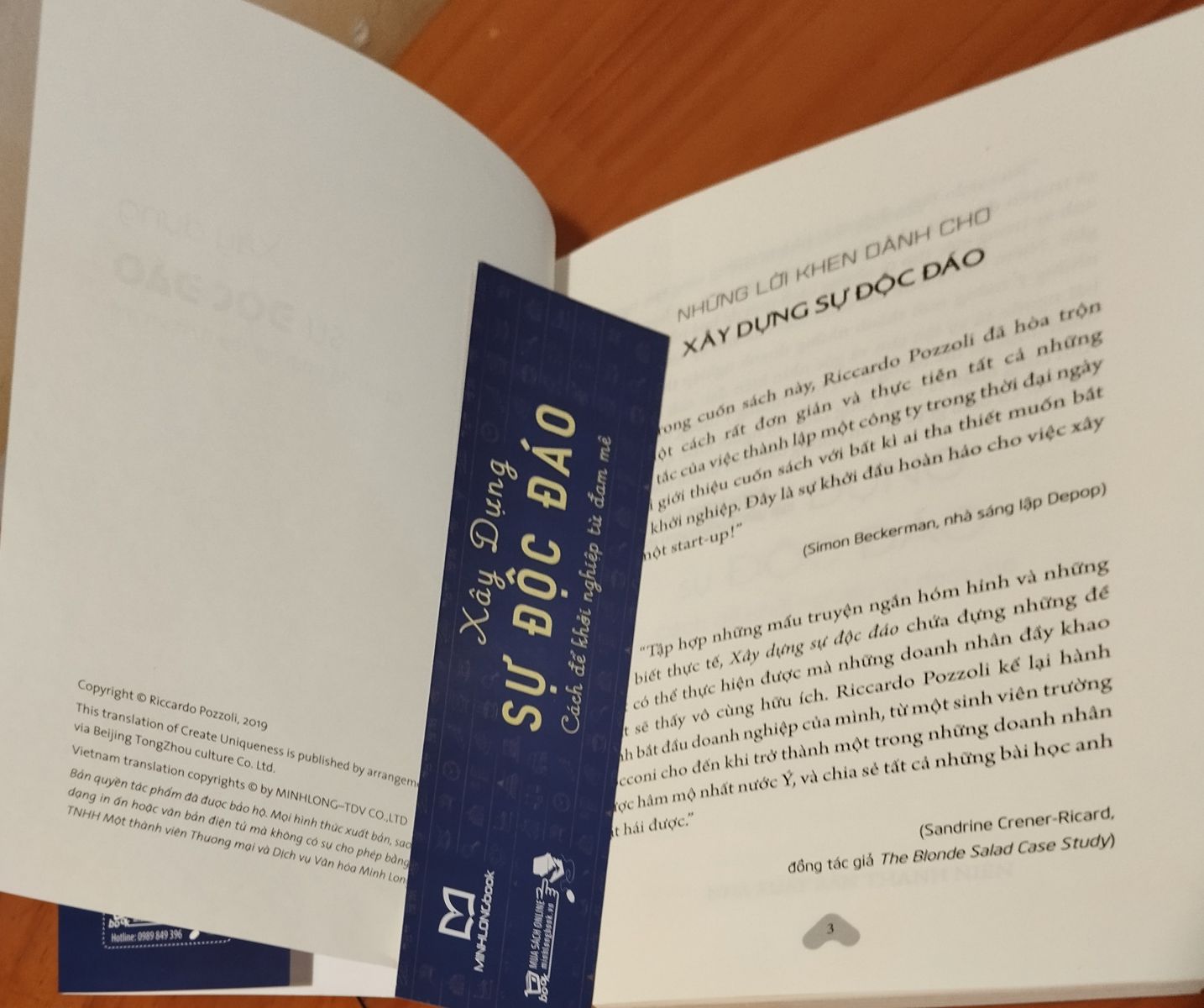 Quyến sách “Xây dựng sự độc đáo cách để khởi nghiệp từ đam mê” với độ dài 228 trang sẽ giải đáp cho bạn biết những câu hỏi đã đặt ra phía trên từ đó bạn sẽ định hướng được quy trình khởi nghiệp của bản thân vừa đúng hướng lại phù hợp với đam mê của mình. Hãy tìm và tận hưởng những thắc mắc mà hiện hữu trong bạn.