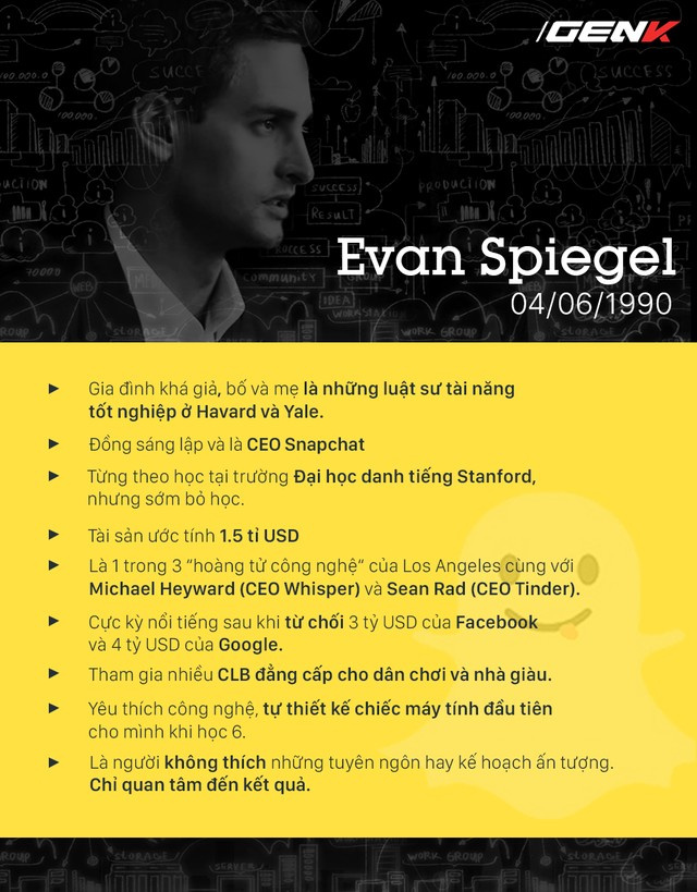 CEO của Snapchat, Evan Spiegel là tỉ phú trẻ tuổi nhất và cũng… “điên” nhất trong làng công nghệ thế giới. Thế nhưng những thành công của anh khiến tấ...