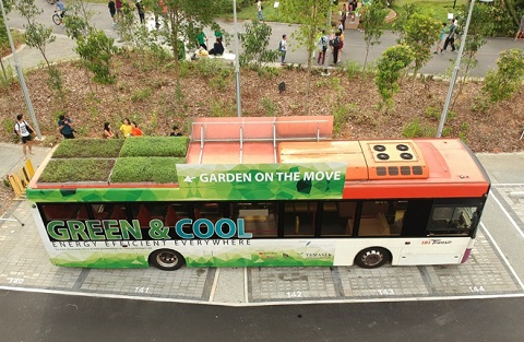 Thảm cây xanh đặt trên nóc xe nuôi dưỡng bằng hệ thống bông khoáng Gaiamat mỏng nhẹ, có khả năng điều hòa nhiệt độ giúp tiết kiệm nhiên liệu chạy máy...