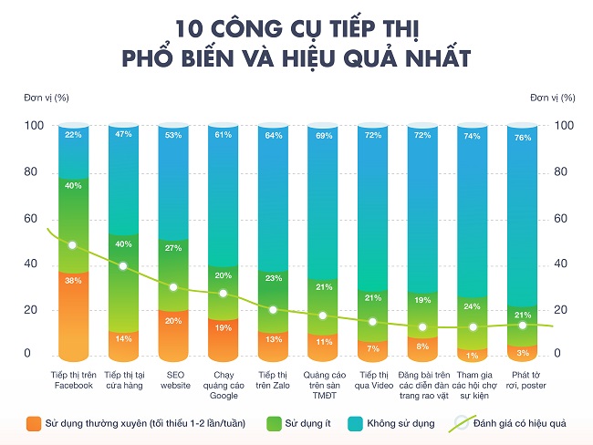 Các đơn vị có kênh online tăng trưởng cho biết họ sử dụng kết hợp các mạng xã hội và sàn TMĐT, đồng thời cũng chi ngân sách trung bình chạy quảng cáo...